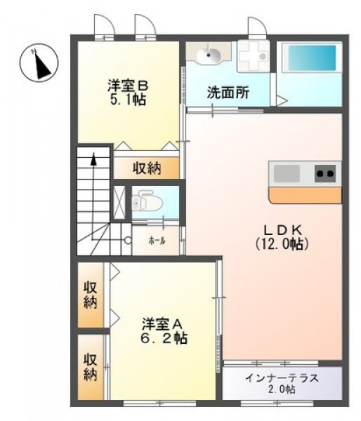 | 敷金 | 1ケ月 | 間取り | LDK12、洋6.2、洋5.1 |