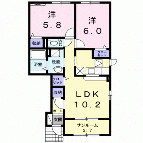 | 敷金 | 間取り | 洋6、洋5.8、LDK10.2 | |